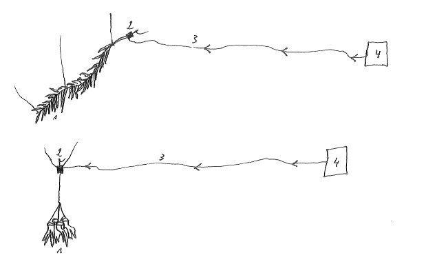 [lang_fr]Cette installation sonore sur site étudie les différentes manières de faire vibrer et résonner du matériel végétal mort et des canettes. Des transducteurs et de petits moteurs mettent en branle des éléments reliés par des fils pour créer du son. Cette œuvre invite les visiteurs à passer sous elle et à choisir différentes perspectives d’écoute.[/lang_fr]